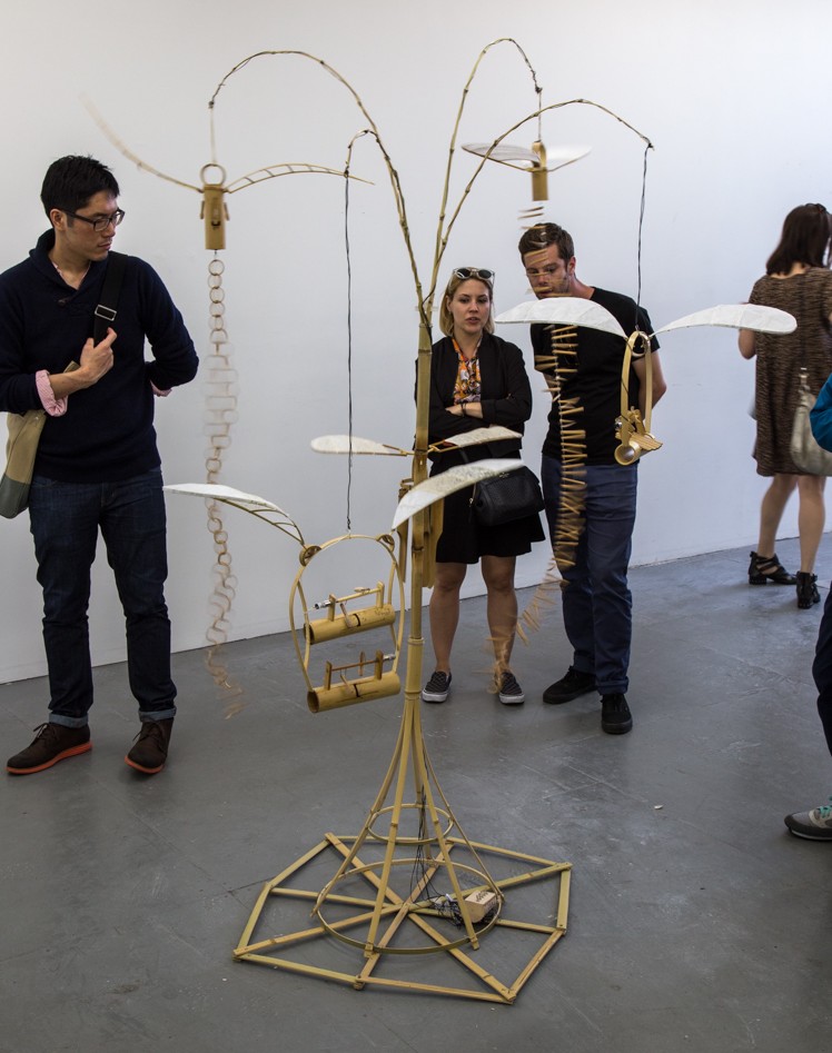 Akinori Matsumoto’s studio housed a number of fanciful sound sculptures fashioned from bamboo. This standing piece was powered by a tiny electric motor, that made it move slightly to produce lovely soothing sounds, similar to wind chimes. Other sculptures, without motors, were meant to be worn or handled to produce sounds.